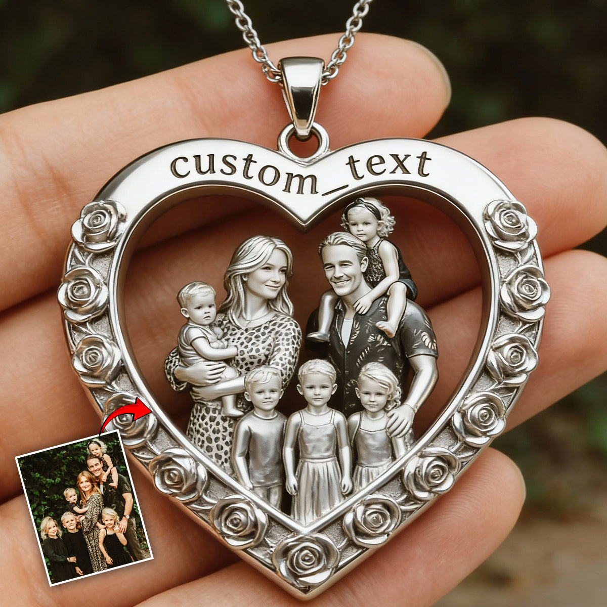 Best Family Ever - Personalized Family Shaped Metal Pendant Necklace