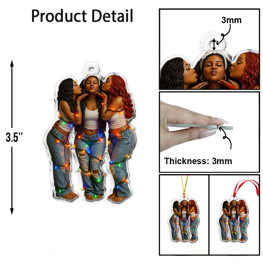 - Regarding the transparent ornament, the material is acrylic. It will be printed on 1 side and can be see-through.
