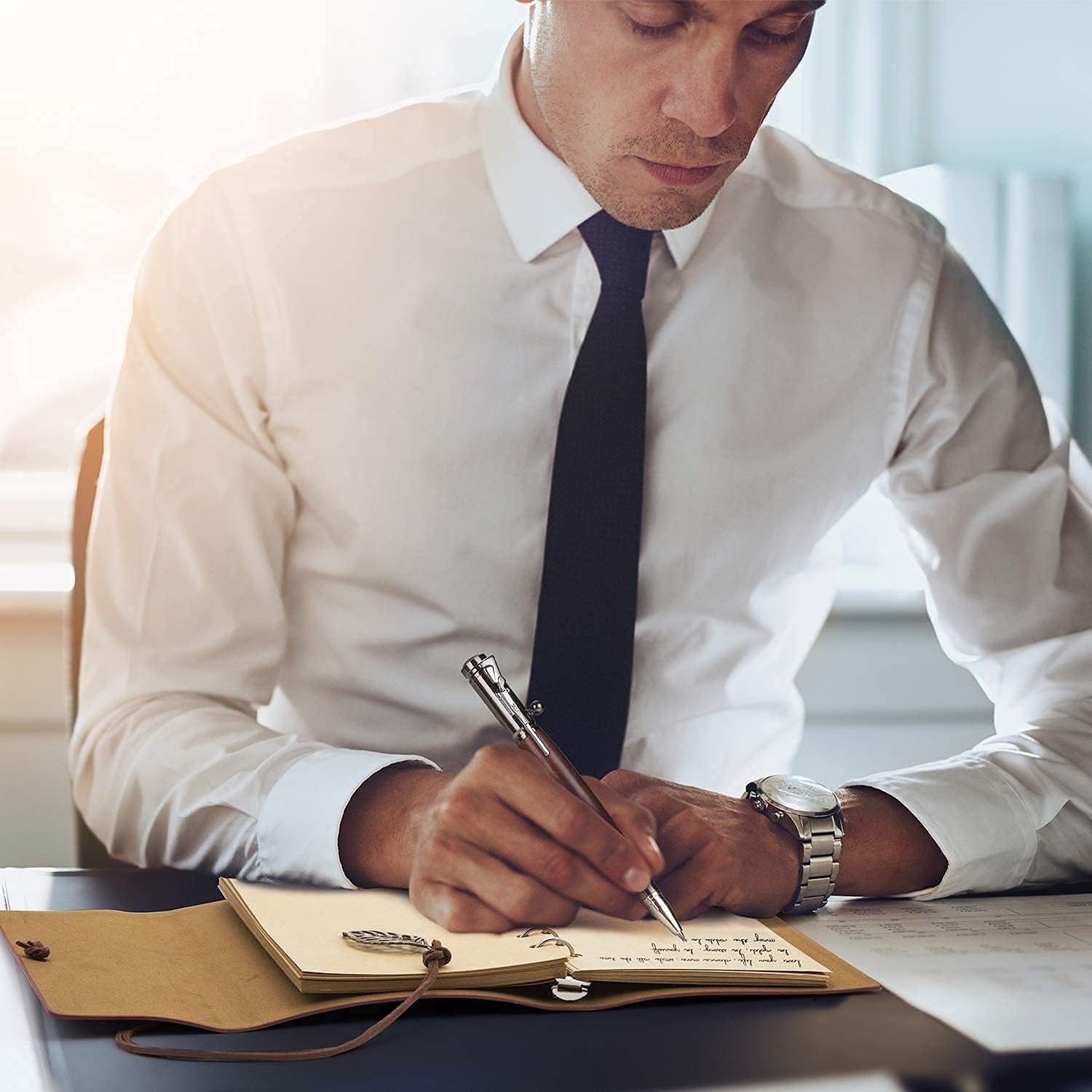 Cool Valentine's Day Gifts for Men: Gifts for Him/Boyfriend/Husband/Dad,Come with exquisite leather pen case, the natural handmade ball point pen is ideal gift set for outdoor pros, security staff, police, military, SWAT, family members, friends.