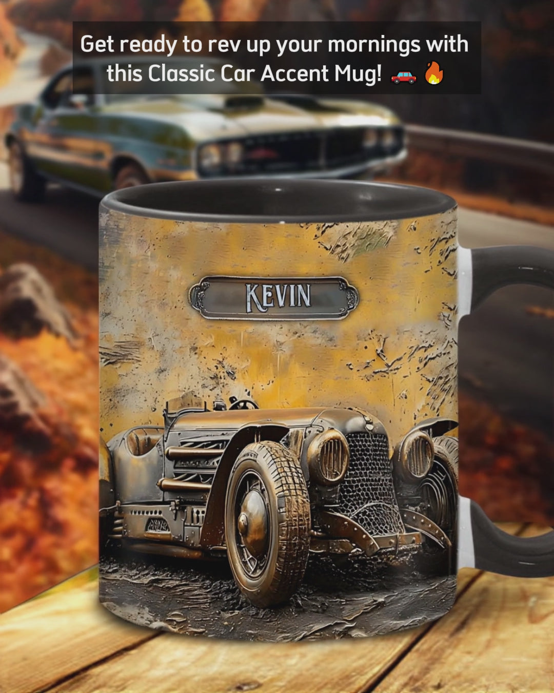 - High quality ceramic mug with two-tone rim, interior, & handle