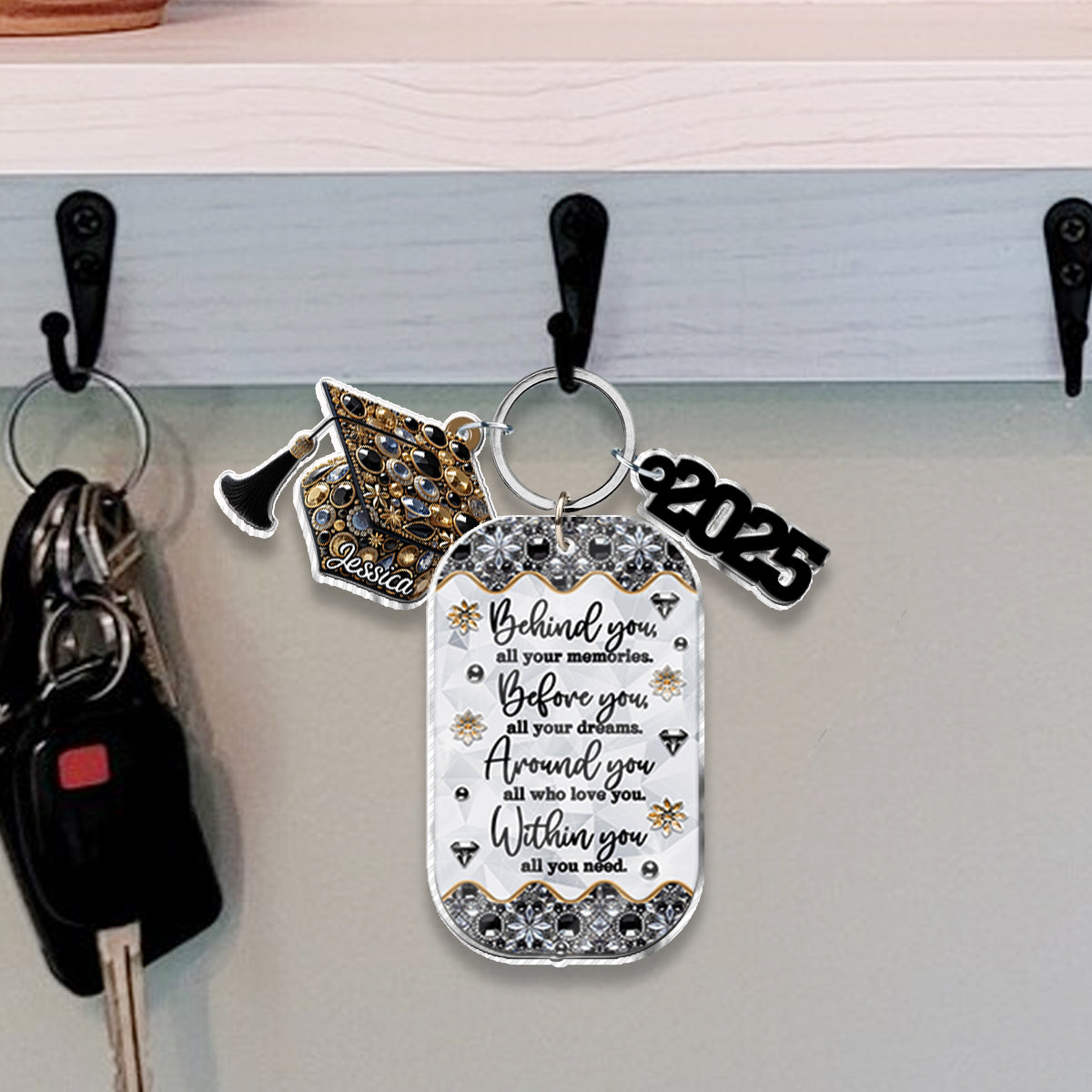 Congrats Grand Class Of 2025 - Personalized Graduation Keychain with Charms