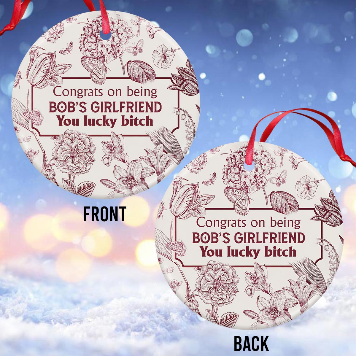 Congrats On Being My Girlfriend / Boyfriend / Wife / Husband You Lucky - gift for boyfriend, wife, husband, girlfriend - Personalized Ceramic Circle Ornament