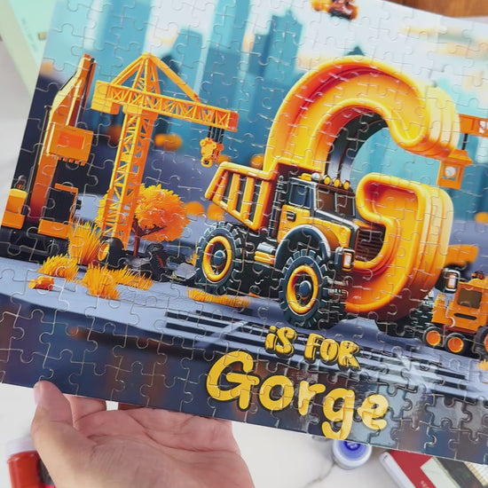 Construction Vehicles Letters - Personalized Kid Jigsaw Puzzle