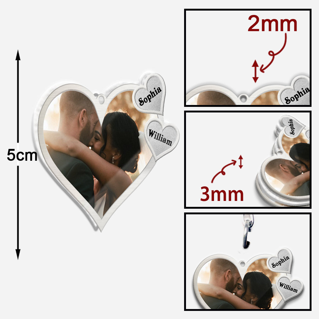 Drive Safe - Personalized Metal Pattern Print Couple Keychain (Printed On Both Sides)