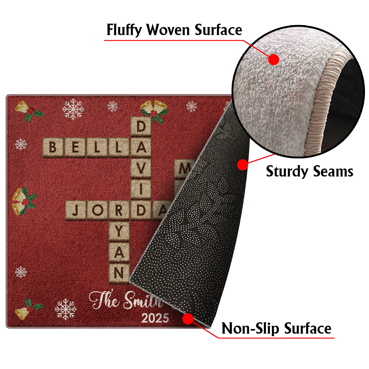 Crossword Puzzle Scrabble - Personalized Family Non-Slip Tufted Rug
