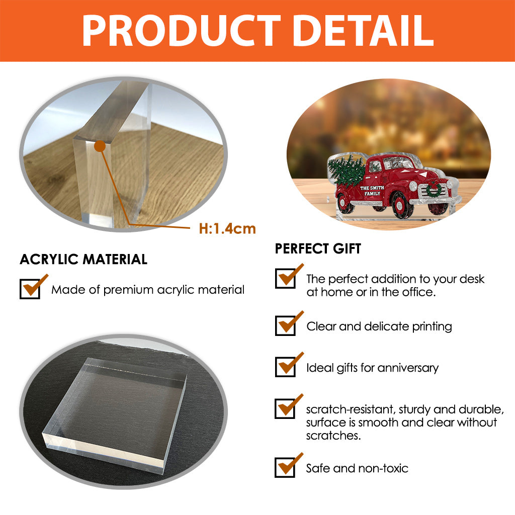 Crystal Red Truck Merry Christmas - Personalized Family Custom Shaped Acrylic Plaque