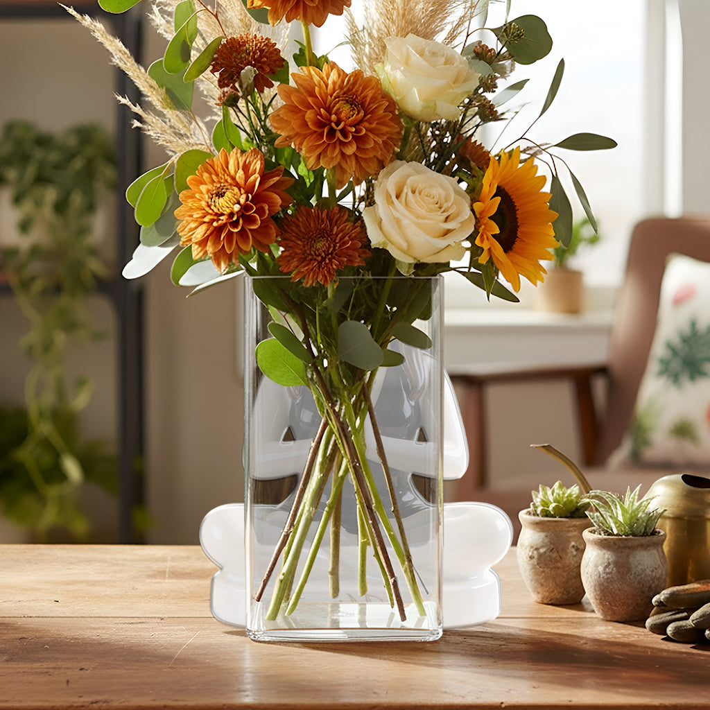 The front acrylic panel is printed on one side with vivid, high-quality colors, adding depth and personality while keeping a clean, modern look. The pot’s height and proportions make it suitable for small plants, fresh flowers, dried arrangements, or artificial bouquets, making it a flexible décor piece for homes, offices, or gift-giving.