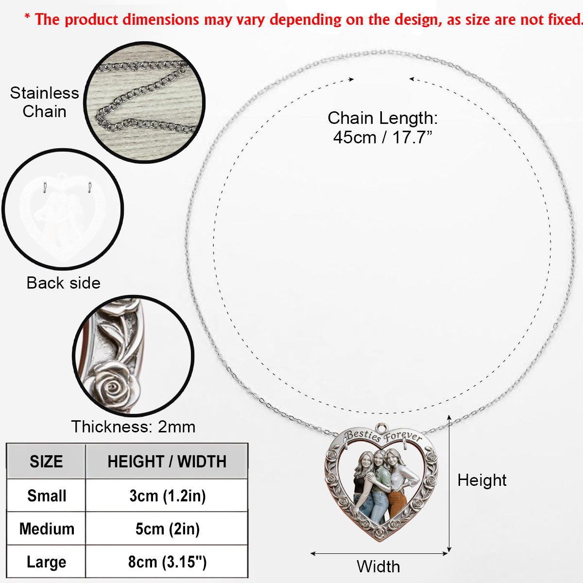 Custom From Any Photo - Personalized Bestie Shaped Metal Pendant Necklace