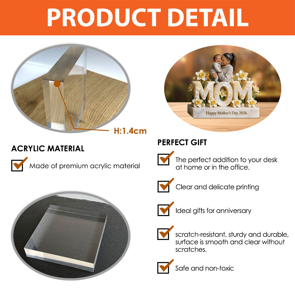 Custom Mother's Day Gift For Mom/ Grandma, Custom Any Flower - Personalized Mother Custom Shaped Acrylic Plaque