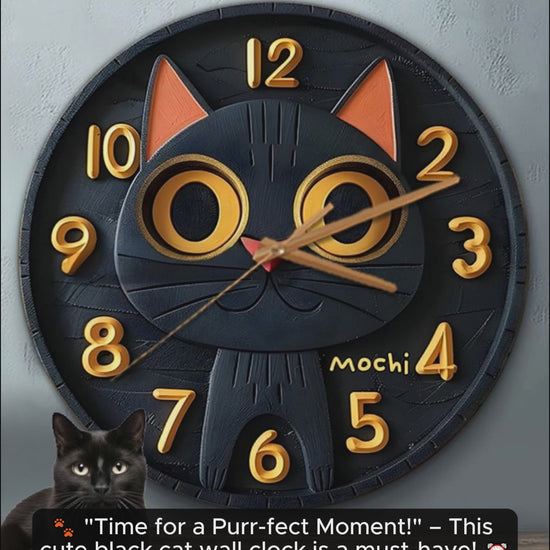 Cute Black Cat - Personalized Black Cat Wall Clock