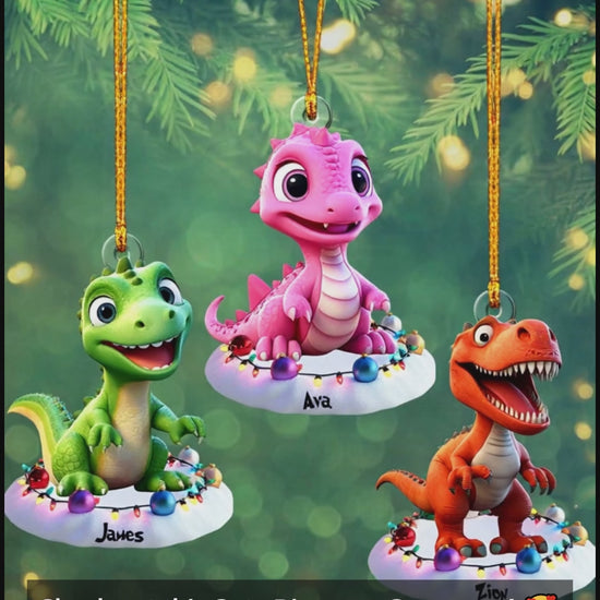 Cute Dinosaur Gift For Grandkids - Personalized Kid Custom Shaped Ornament