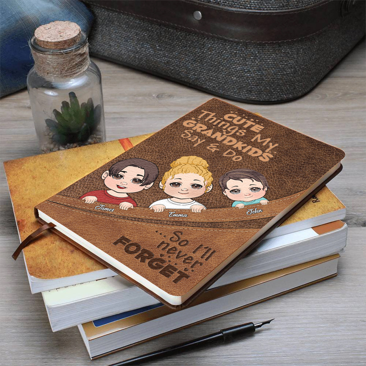 Cute Things My Grandkids Say & Do - Personalized Grandma Leather Journal