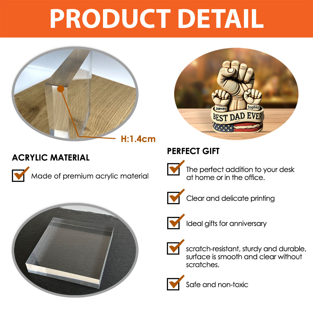 Dad And Kids Hands - Personalized Father Custom Shaped Acrylic Plaque