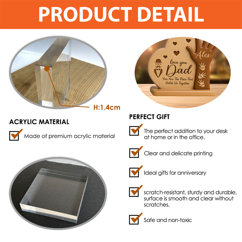 Dad Heart Kid's Hand - Personalized Father Custom Shaped Acrylic Plaque