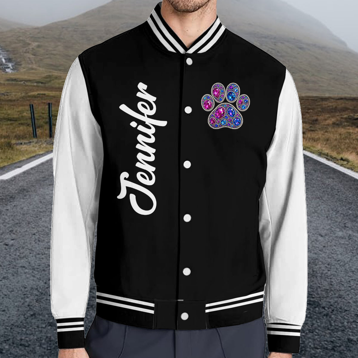 Elevate your streetwear and training look with this custom all-over print varsity jacket, blending athletic style with everyday comfort. Crafted from premium 100% polyester, it’s lightweight, breathable, and durable – perfect for sports, casual wear, or team practices.