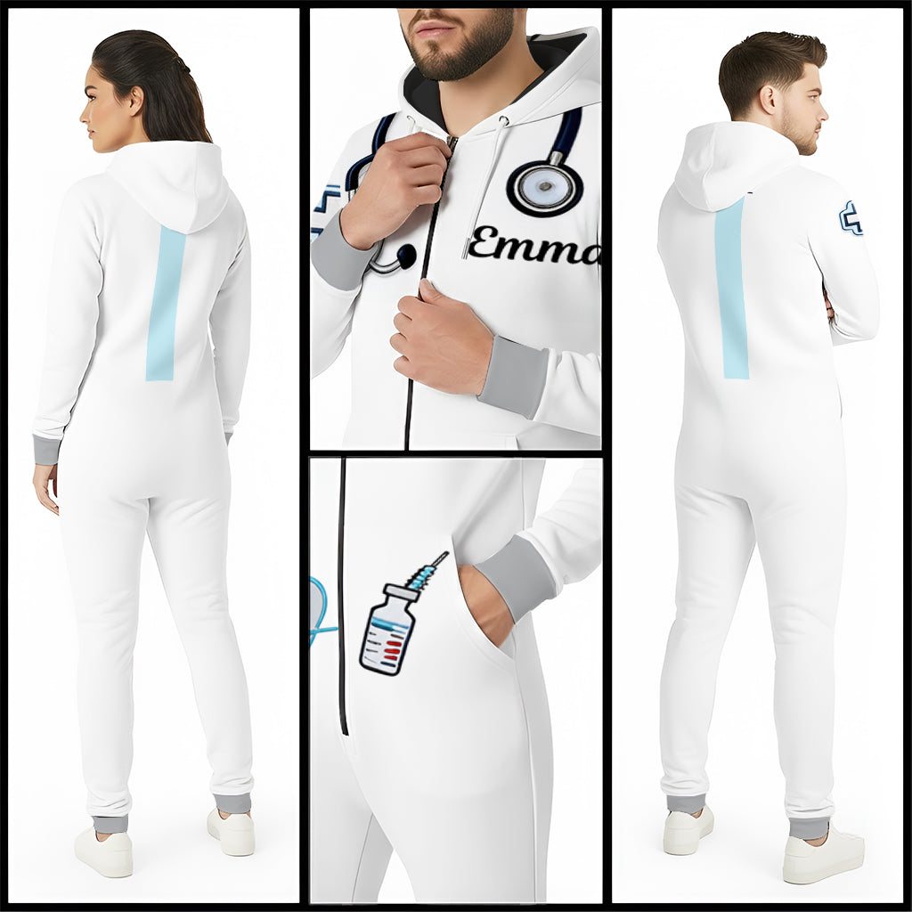 This custom-designed hooded jumpsuit is crafted from high-quality sweatshirt fabric, offering gentle warmth without the weight, ensuring all-day comfort and a relaxed fit. Perfect for everyday wear, it’s designed with sublimation printing, which guarantees vibrant, long-lasting colors while keeping the fabric soft.