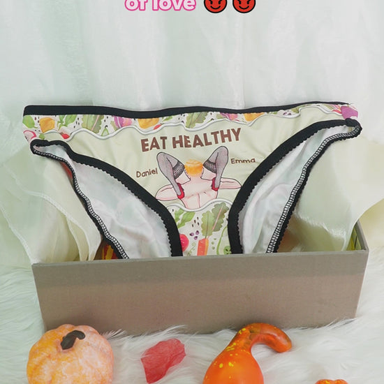 Eat Healthy - Personalized Couple Lace Border Women Briefs