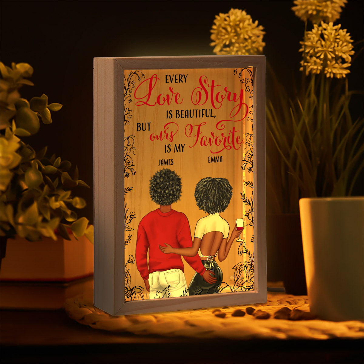 Every Love Story Is Beautiful But Ours Is My Favorite - Personalized Couple Picture Frame Light Box