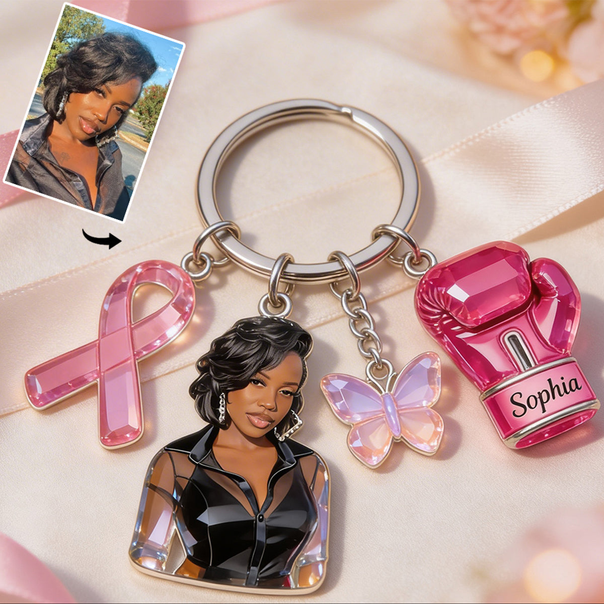 Faith Hope Love - Personalized Breast Cancer Awareness Keychain With Charms