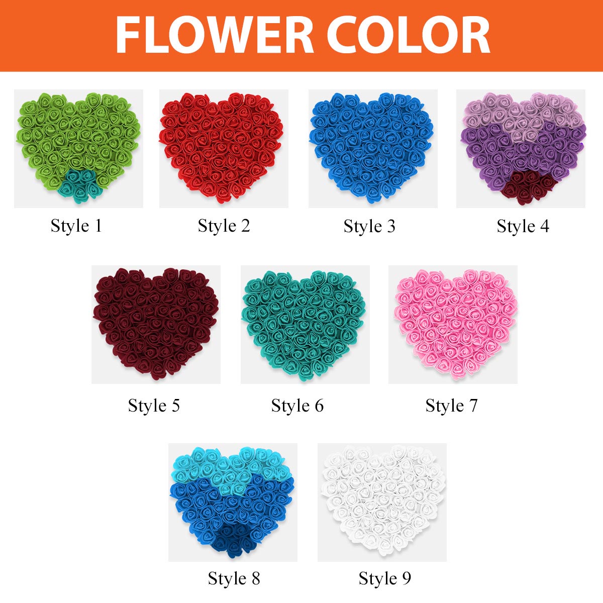 This heart-shaped flower shadow box contains hand-rolled PE foam flowers in various shades.