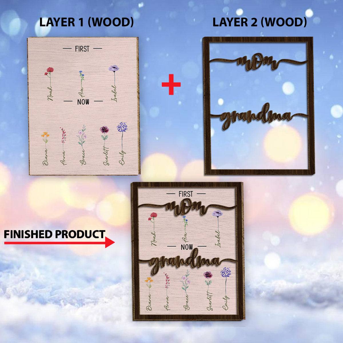 First Mom Now Grandma - Personalized Grandma 2 Layered Wood Sign / Wood Plaque