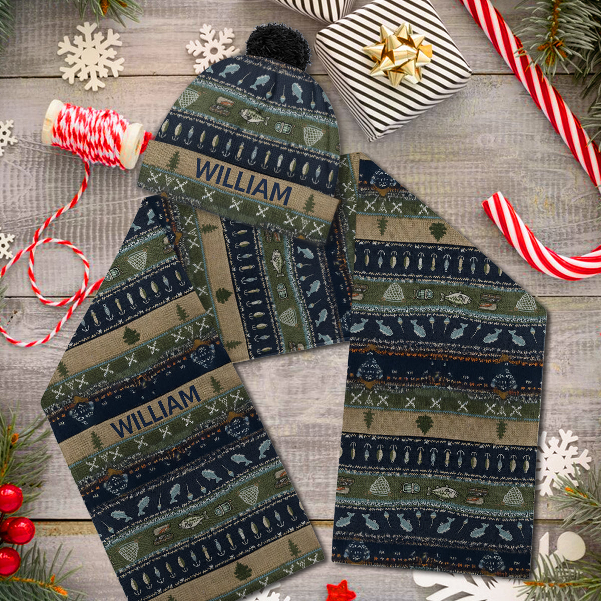 Fishing - Personalized Fishing Knitted Beanie Hat and Scarf Set