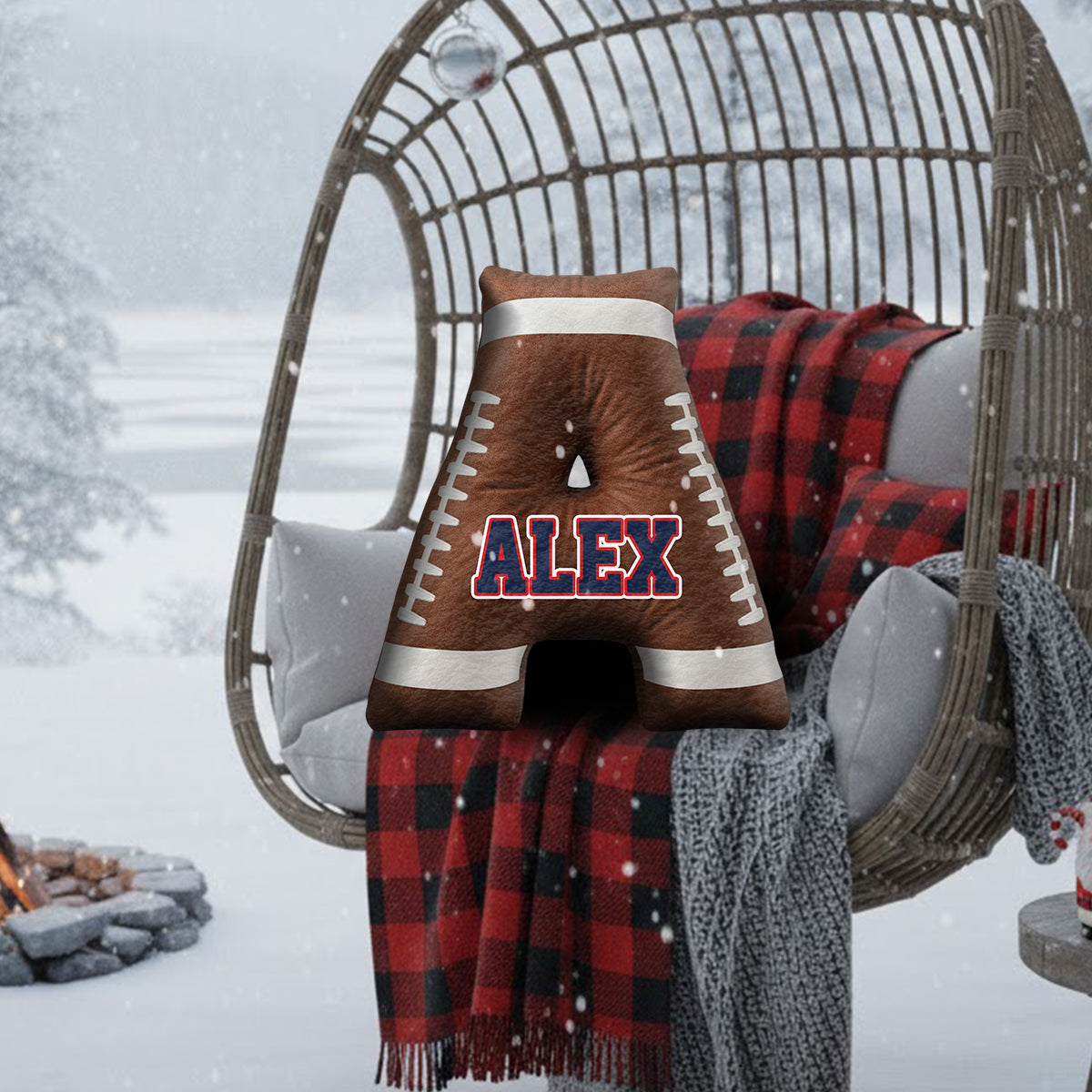 Football Initials Name Custom Alphabet - Personalized Football Faux Fur Shaped Pillow