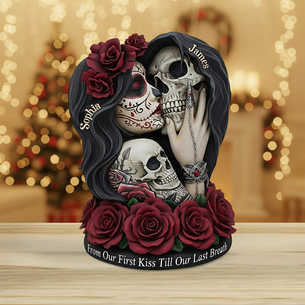 From Our First Kiss Till Our Last Breath - Personalized Skull Custom Shaped Acrylic Plaque