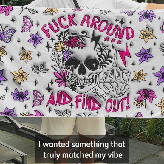 Fuck Around And Find Out - Personalized Skull Beach Towel