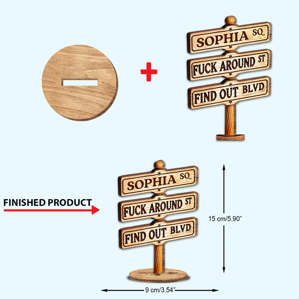 Fuck Around & Find Out - Personalized Colleague Freestanding Wood Plaque