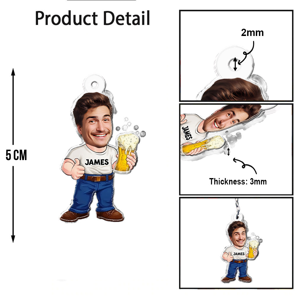 Funny Beer Caricature Man - Personalized Beer Custom Shaped Keychain