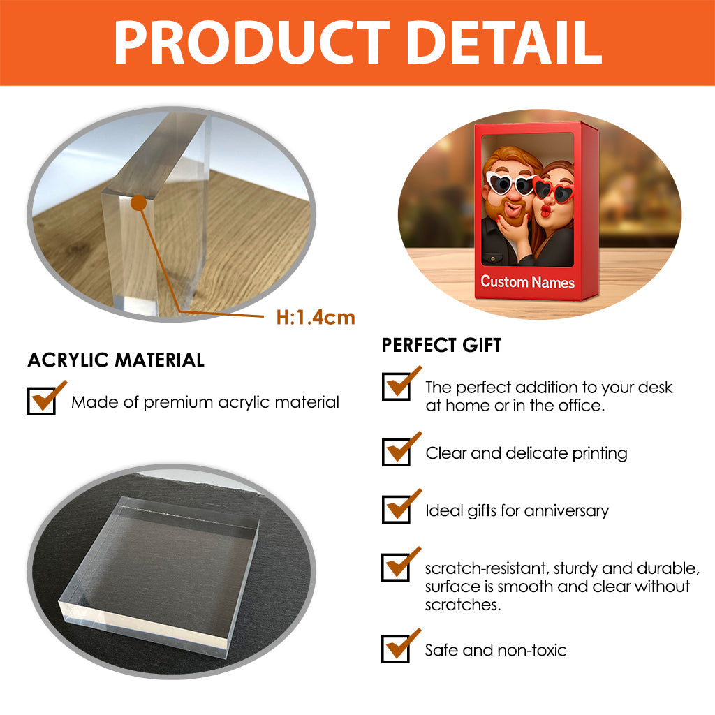 Funny Gift Cartoonish Exaggerated Mascot Style - Personalized Couple Custom Shaped Acrylic Plaque