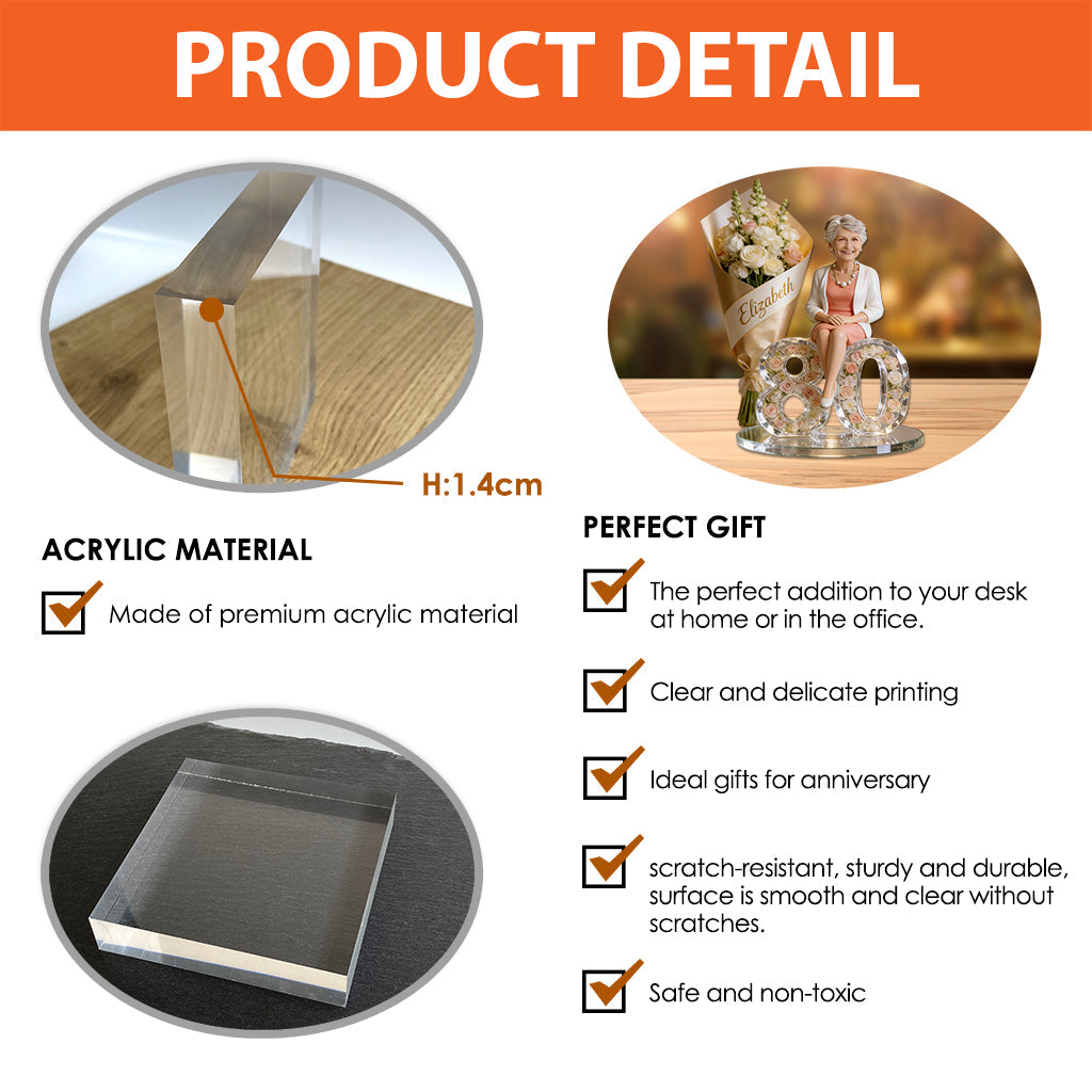 Gift For Her - Flower Bouquet And Number - Personalized Birthday Custom Shaped Acrylic Plaque