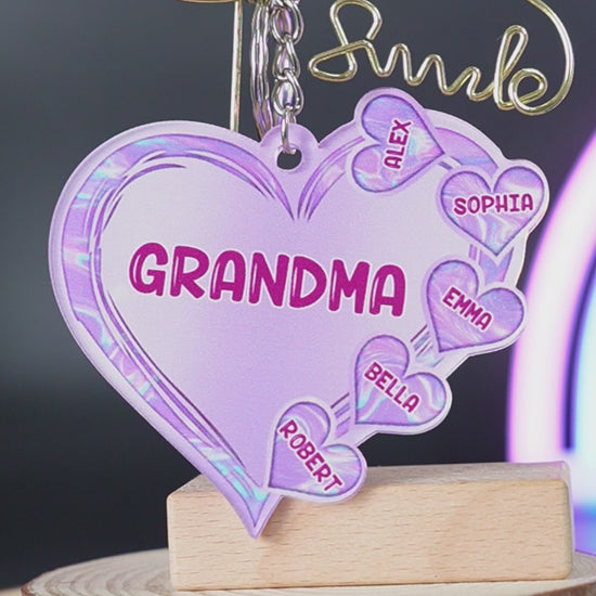 Grandma Heart Hologram Buffalo Plaid - Personalized Grandma Keychain
