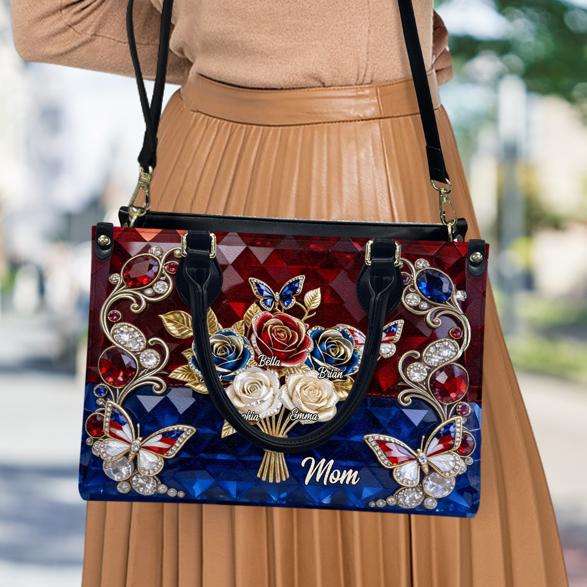 Grandma/Mom's Beautiful Rose Bouquet - Personalized Grandma Leather Handbag