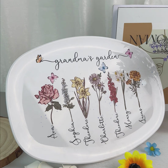 Grandma's Garden Mom's Garden Birth Flowers - Personalized Grandma Plate
