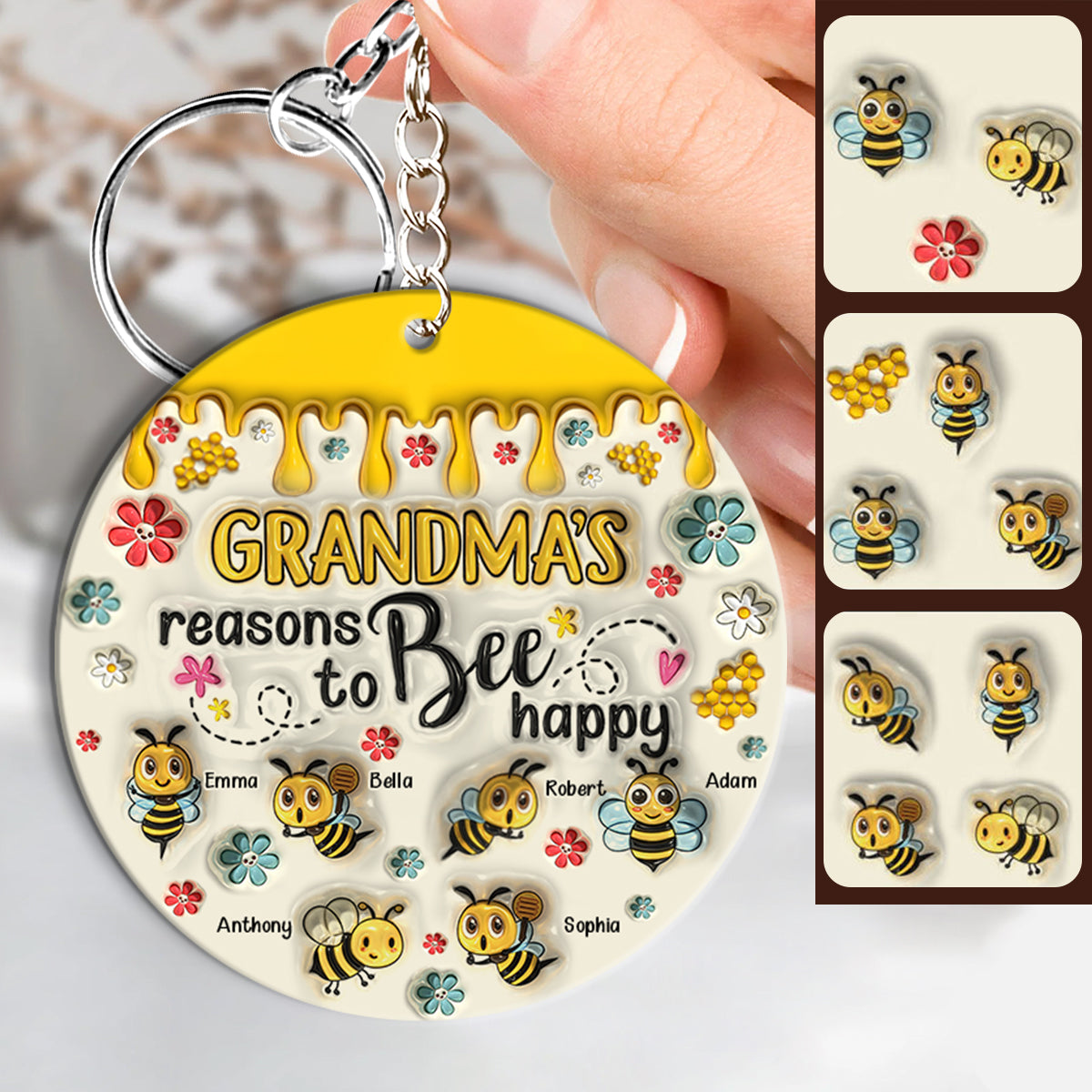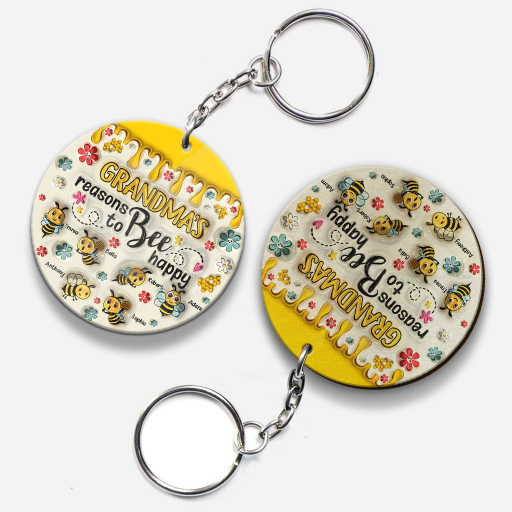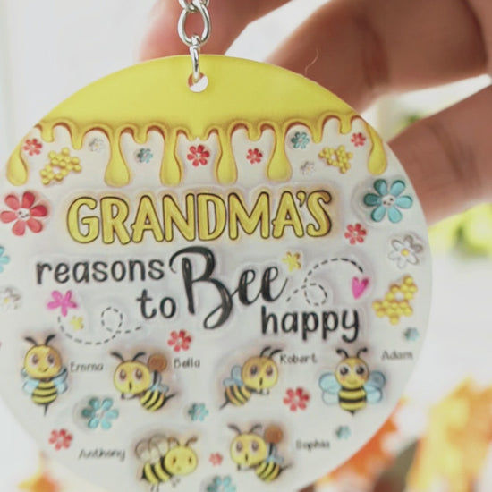 Grandma's Reasons To Bee Happy - Personalized Grandma Keychain