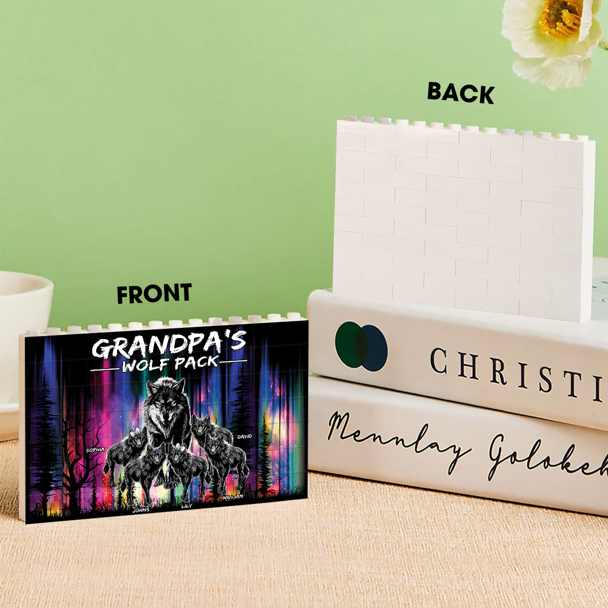 Grandpa's Wolf Pack - Personalized Grandpa One-sided Horizontal Rectangle Building Brick Blocks