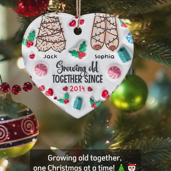 Growing Old Together - Personalized Couple Ceramic Heart Ornament