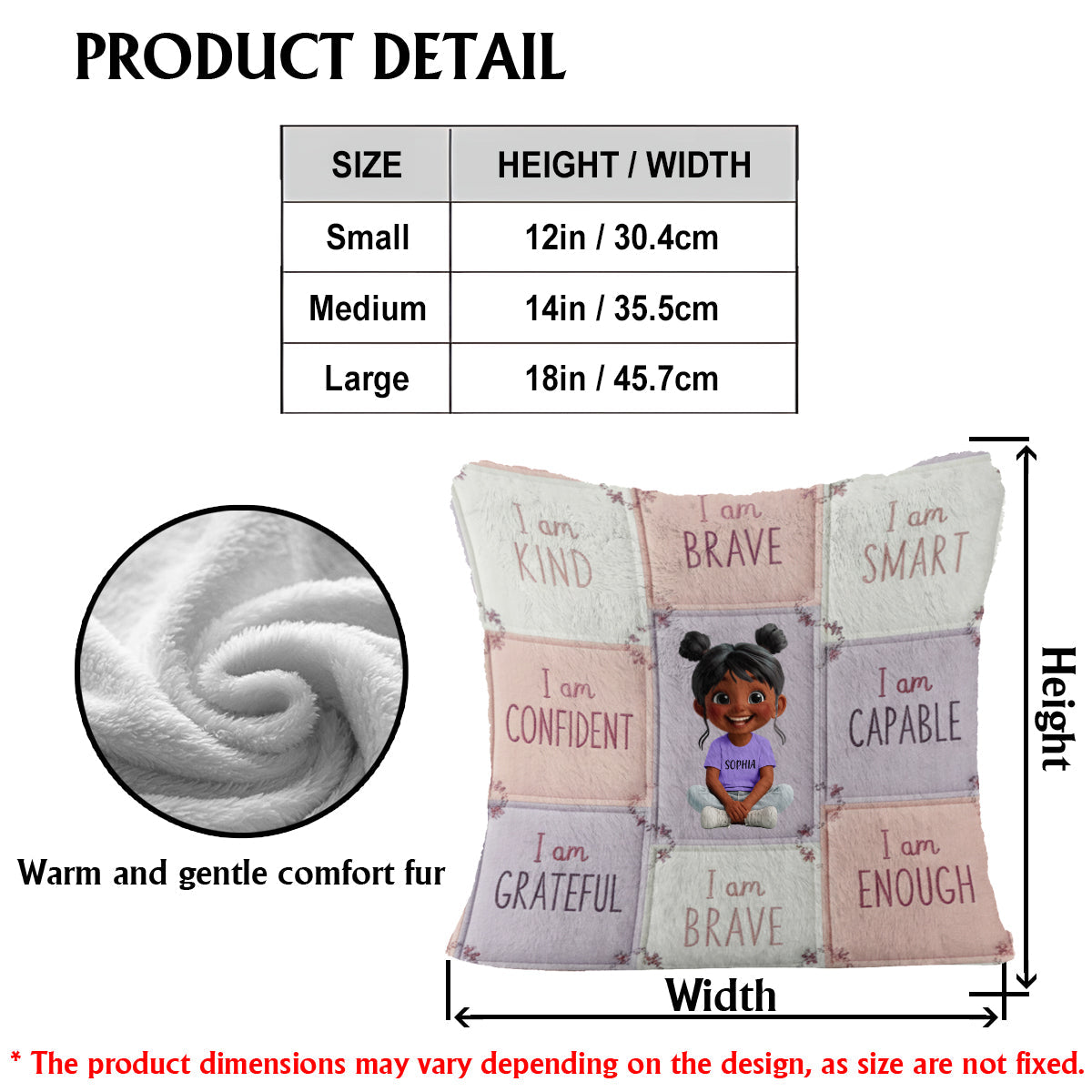 I Am Kind - Affirmation Gift For Kid - Personalized Kid Faux Fur Square Pillow