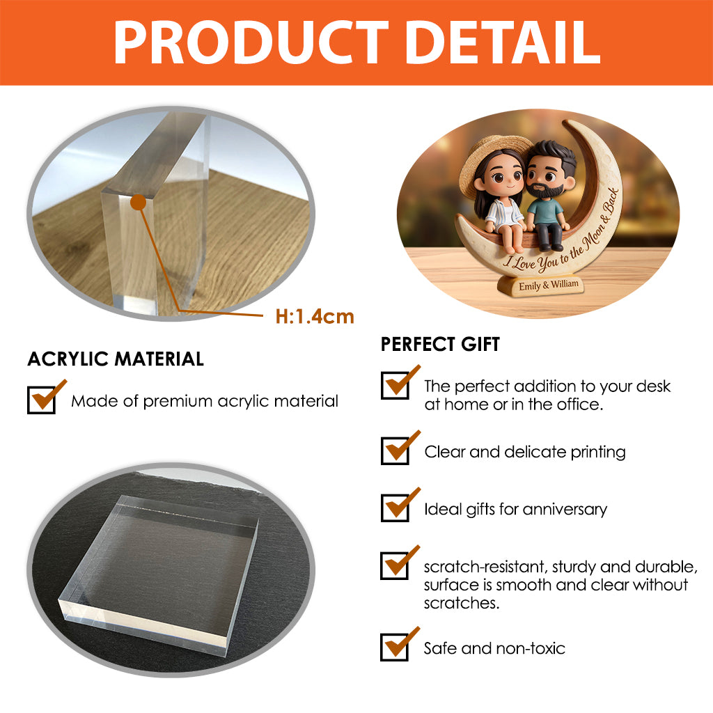 I Love You to the Moon & Back - Personalized Couple Custom Shaped Acrylic Plaque