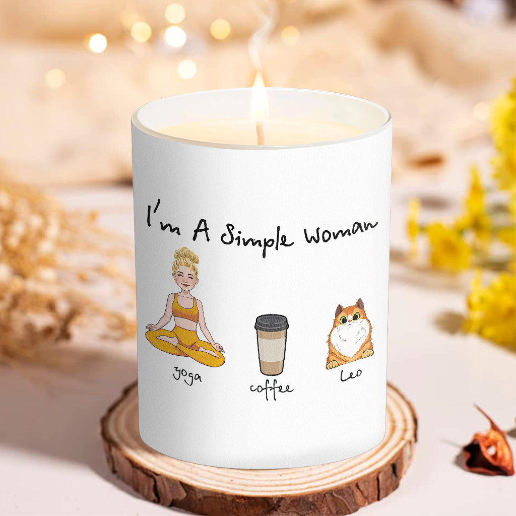 I'm A Simple Woman - Yoga gift for dog lover, cat lover, cat lover - Personalized Candle With Wooden Lid