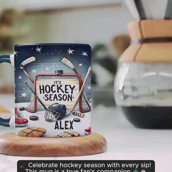 - High quality ceramic mug with two-tone rim, interior, & handle