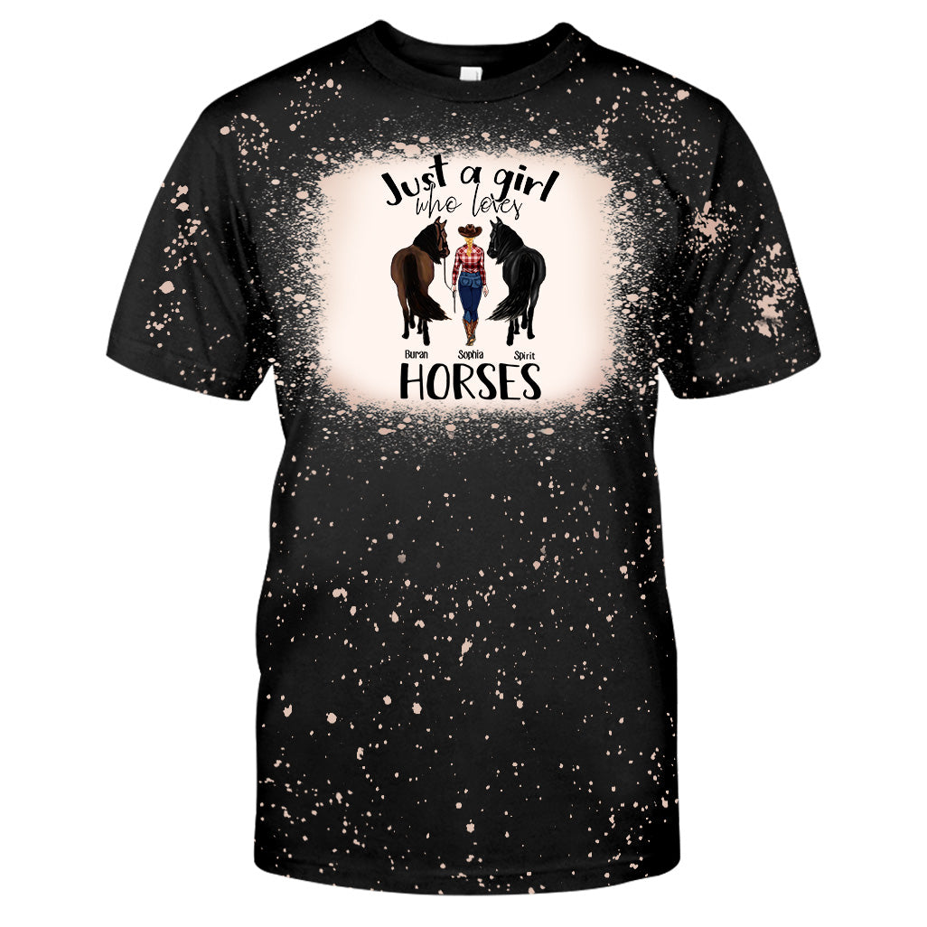 Just A Girl Who Loves Horses - Personalized Horse Bleached T-Shirt