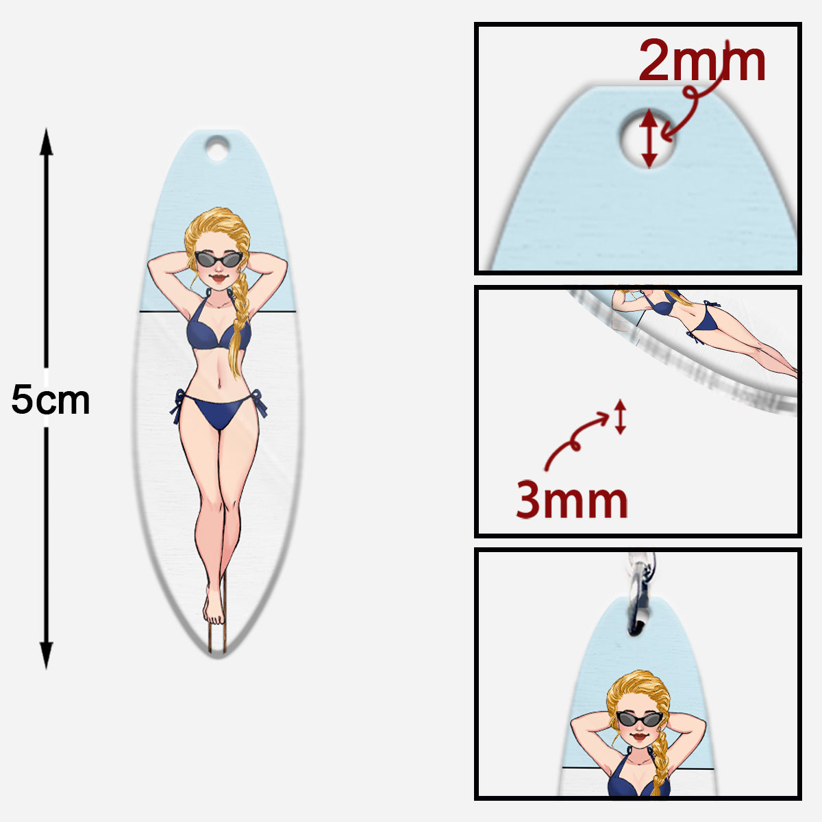 Laying On Board - Personalized Surfing Keychain (Printed On Both Sides)