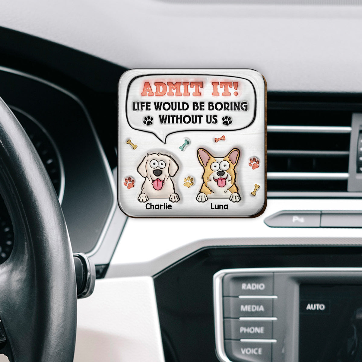 Life Would Be Boring Without Me - Personalized Dog Shaped Car Visor Clip