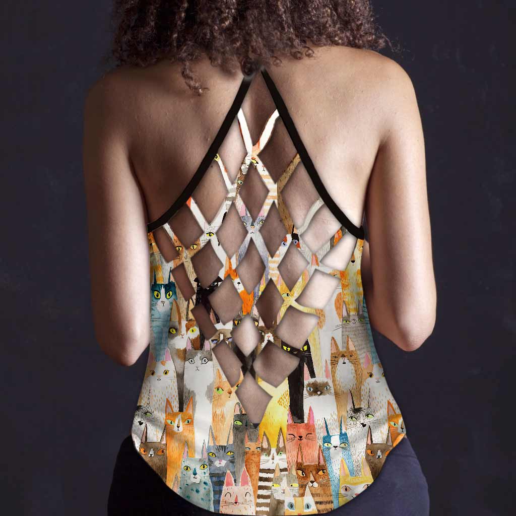 Premium Cross Tank Top: Back lattice is made of triple-layered black stretch fabric and is oversewn (so it cannot be printed)