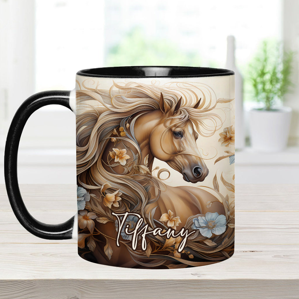 - High quality ceramic mug with two-tone rim, interior, & handle
