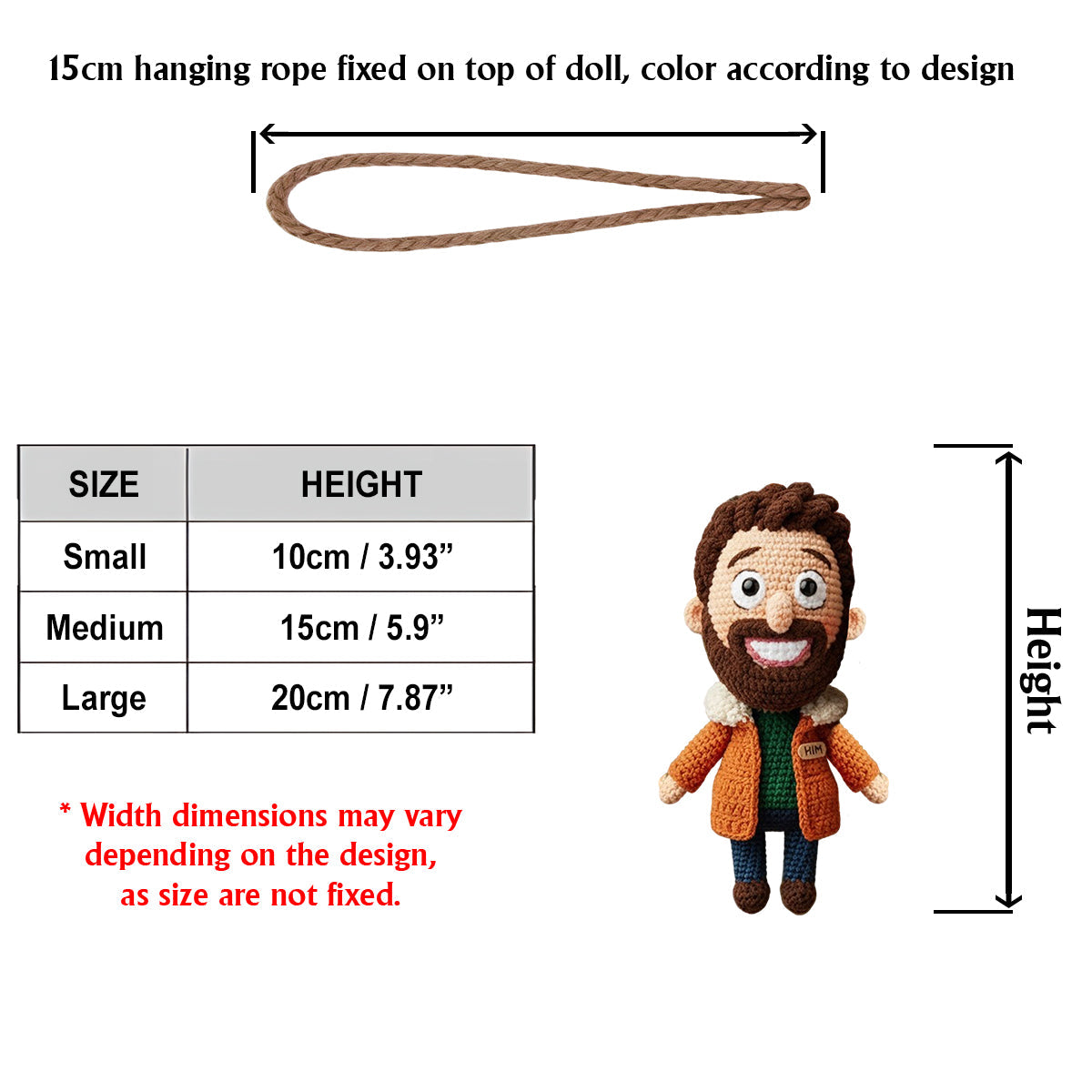 - Available Sizes: Small: 10cm (3.9"); Medium: 15cm (5.9"); Large: 20cm (7.9")