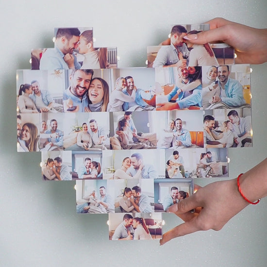 Would you like to surprise your lover with an illuminated led panel? Using your unforgettable moments with your lover inside a heart panel, we prepare a special illuminated heart design for you. You can choose 5-23 photographs are used in a special heart board. And you can custom your and your lovers name on the board. With Uv Printing, we print your photos in the best quality. You have two choices between wall lamp and desktop lamp. When received, it can be hang on the wall or stand on the desk immediately. You do not need to take any additional action for the installation. The photos uploaded when ordering are arranged by us according to the resolution and the size of your photos. Therefore, the photo sequence on the product is shaped according to the most suitable frame on the panel. Satisfying your lover or girlfriend is as easy as a gift. Please note: Due to the air transport regulation that Lithium batteries cant not ship by air, item is ship to customer without battery.